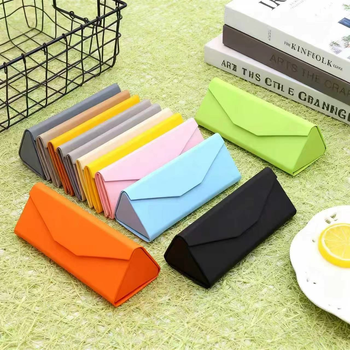 Étui pour lunettes de soleil pliable en triangle à la mode Étui à lunettes avec logo personnalisé Étui en cuir PU pour lunettes